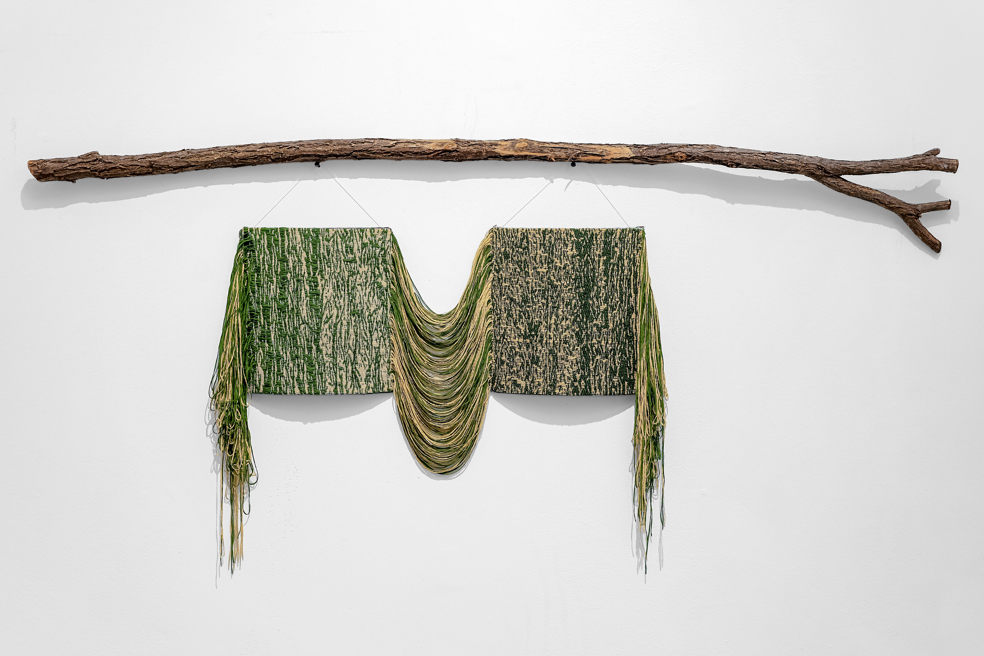 对河久儿而言,想象能够跨越文化、物质与情感,编织则能够连接想象、物质、身体。这种想象的方式,甚至以一种颇为具象的象征姿态出现在了她的作品里——那些柔软的、千丝万缕的“连接线”,总是如同河流一般将织物牵引、缠绕和相连。它是作品的一部分,如同能量的流转,如同“想象”这个动作本身对边界的跨越与连接。