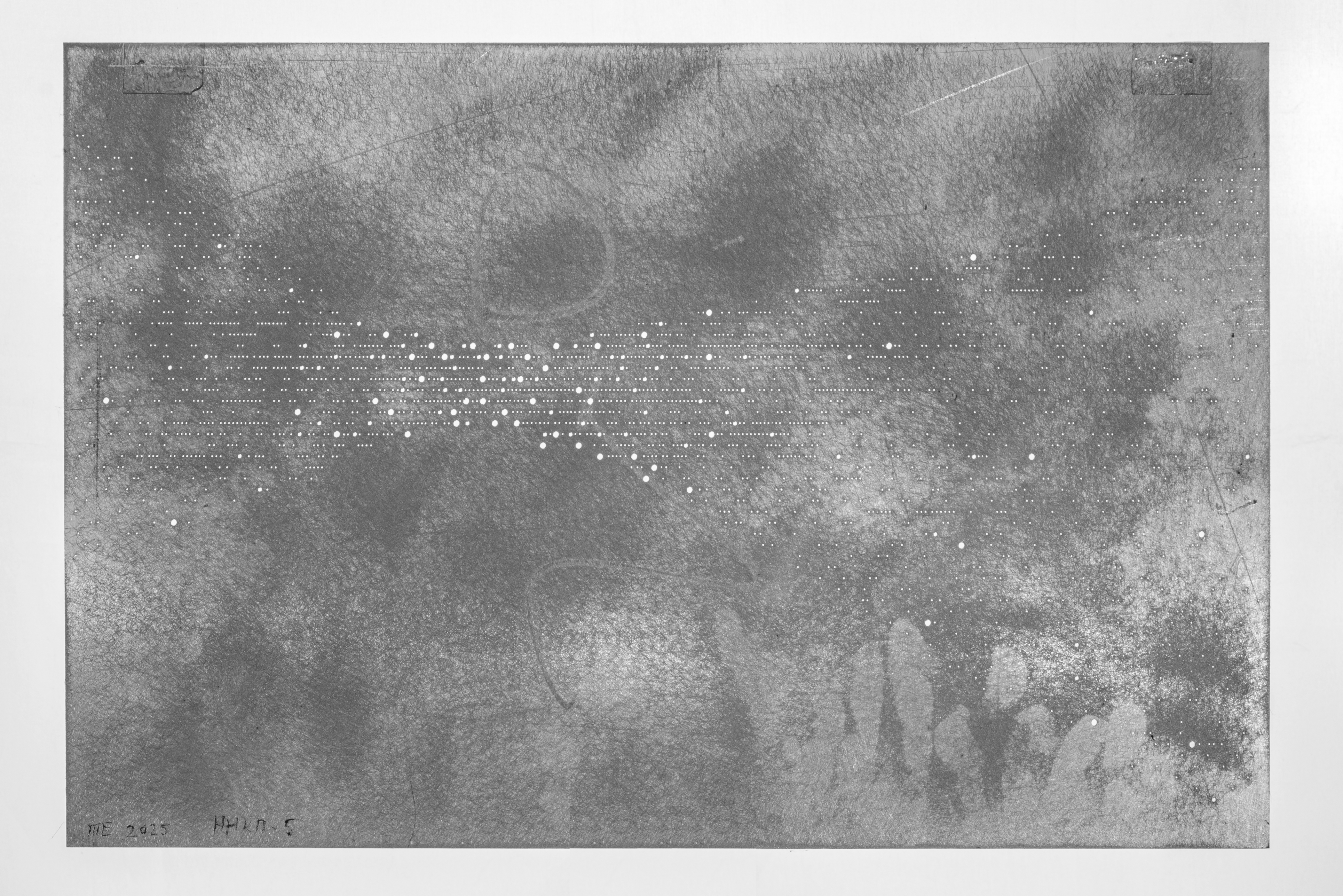 该项目通过书写作为神圣仪式的棱镜构建了一种诗学。 其核心是一个关于人类相遇的叙事,被设想为宇宙中行星的会合——一个具有宇宙量级的事件。 每件作品都如同私人日记的“一页”。 这一系列抽象作品展开成为一本“感伤日志”,其中每一件都成为记忆与预感编年史中的一条记录。 两个人的交汇表现为一种“行星的靠近”,唤起了宇宙不可抗拒的法则。 通过调用非语言代码,该项目提供了一种语言的替代品,并探索了后数字时代其他交流模式的可能性——在这个时代,最终,“唯有吸引力”。