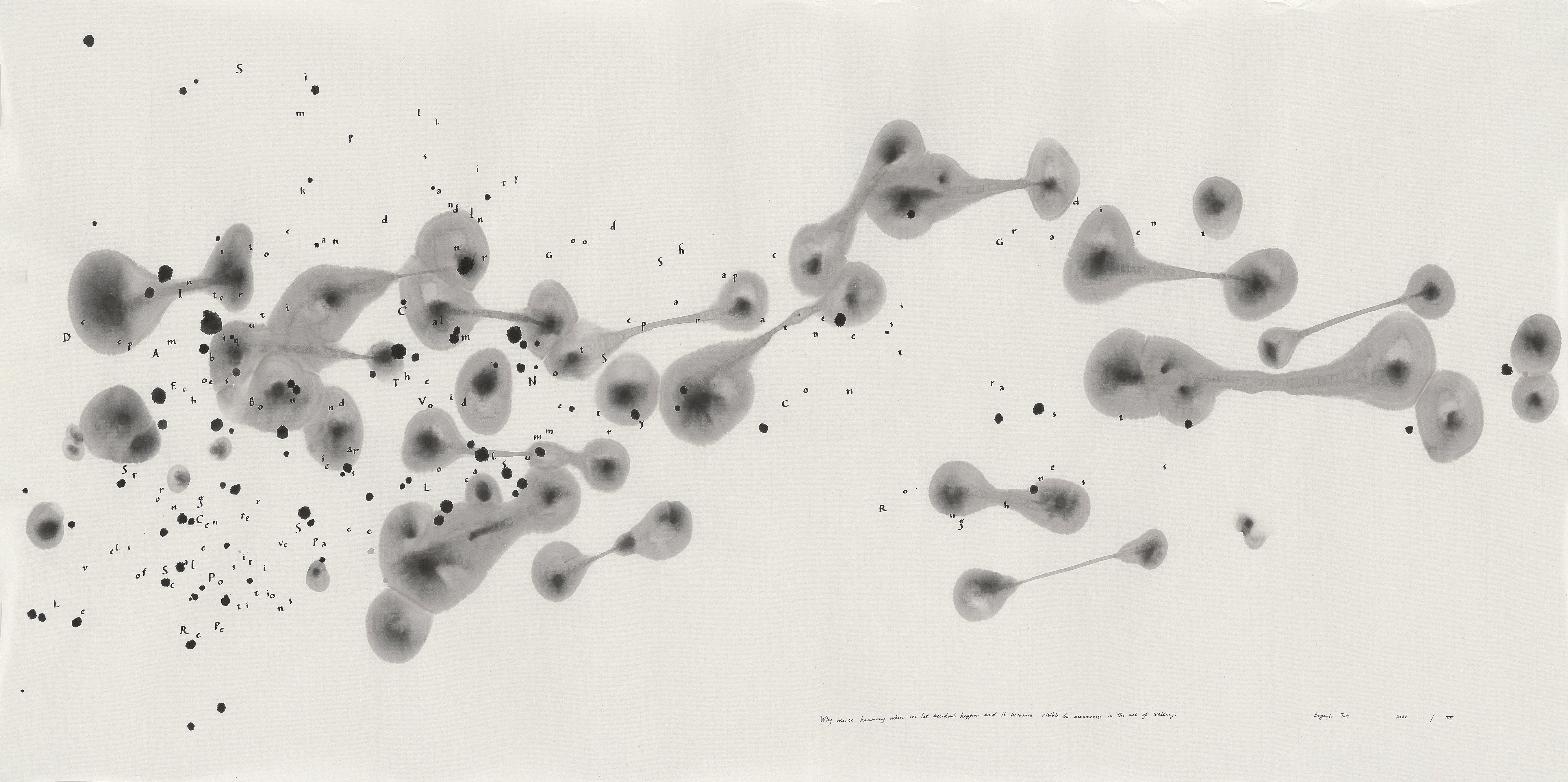 在我的项目中,我探索关于数字未来和逃避完全透明的方法的问题。我扩展了“女性书写”(women's writing)和“微小姿态”(minor gestures)的实践。我的作品使书写行为变得当下化,并运用空间手段来传递艺术陈述。我的创作方法受到我的建筑背景、古典书法研究、舞蹈以及对古老意识和非语言信息传递的兴趣的影响。我尝试各种技术,从事绘画、装置和物件的创作。